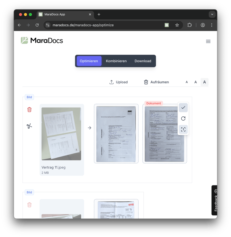 With MaraDocs, you transform your clients' email attachments into perfect scans. Crop, straighten, merge, text recognition, and much more.
